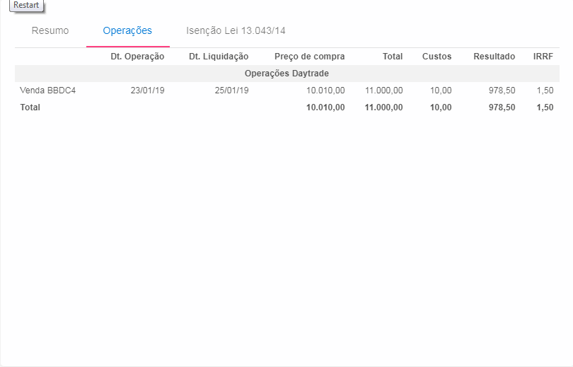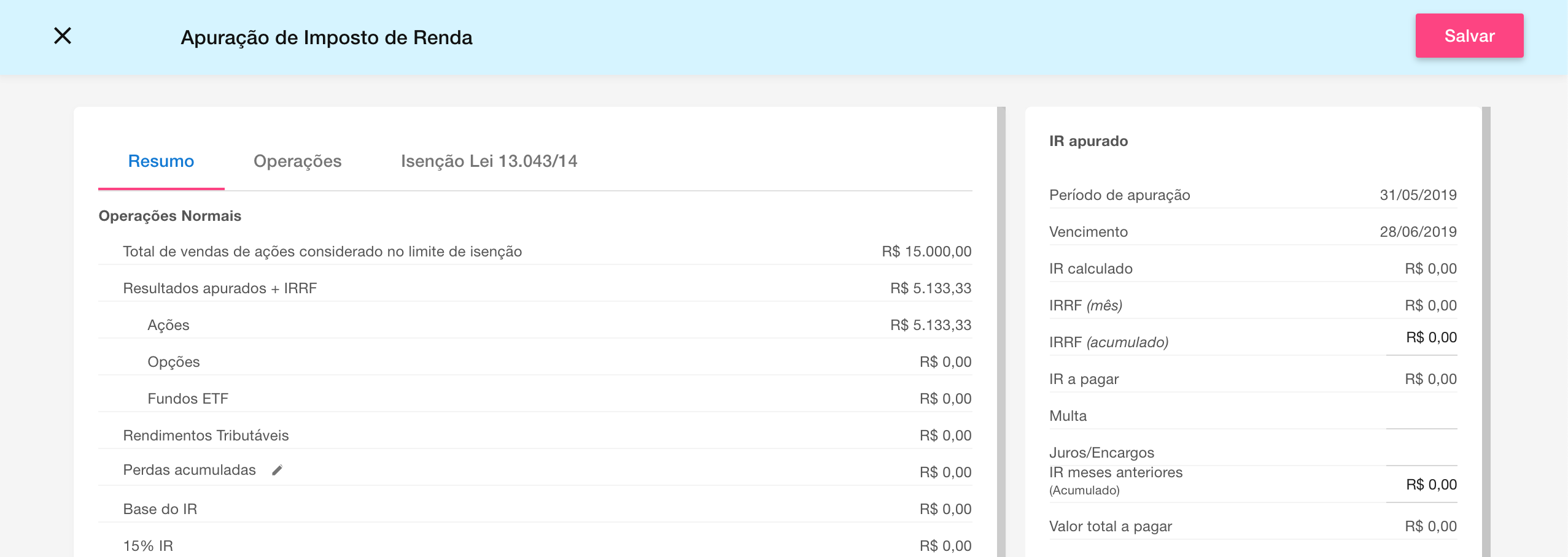 O Meu Dinheiro inicia o processo de apuração a partir do mês em que houve o primeiro registro de operação com apuração de resultado, sendo necessário realizar a apuração para todos os meses subsequentes em que foram realizadas novas operações.