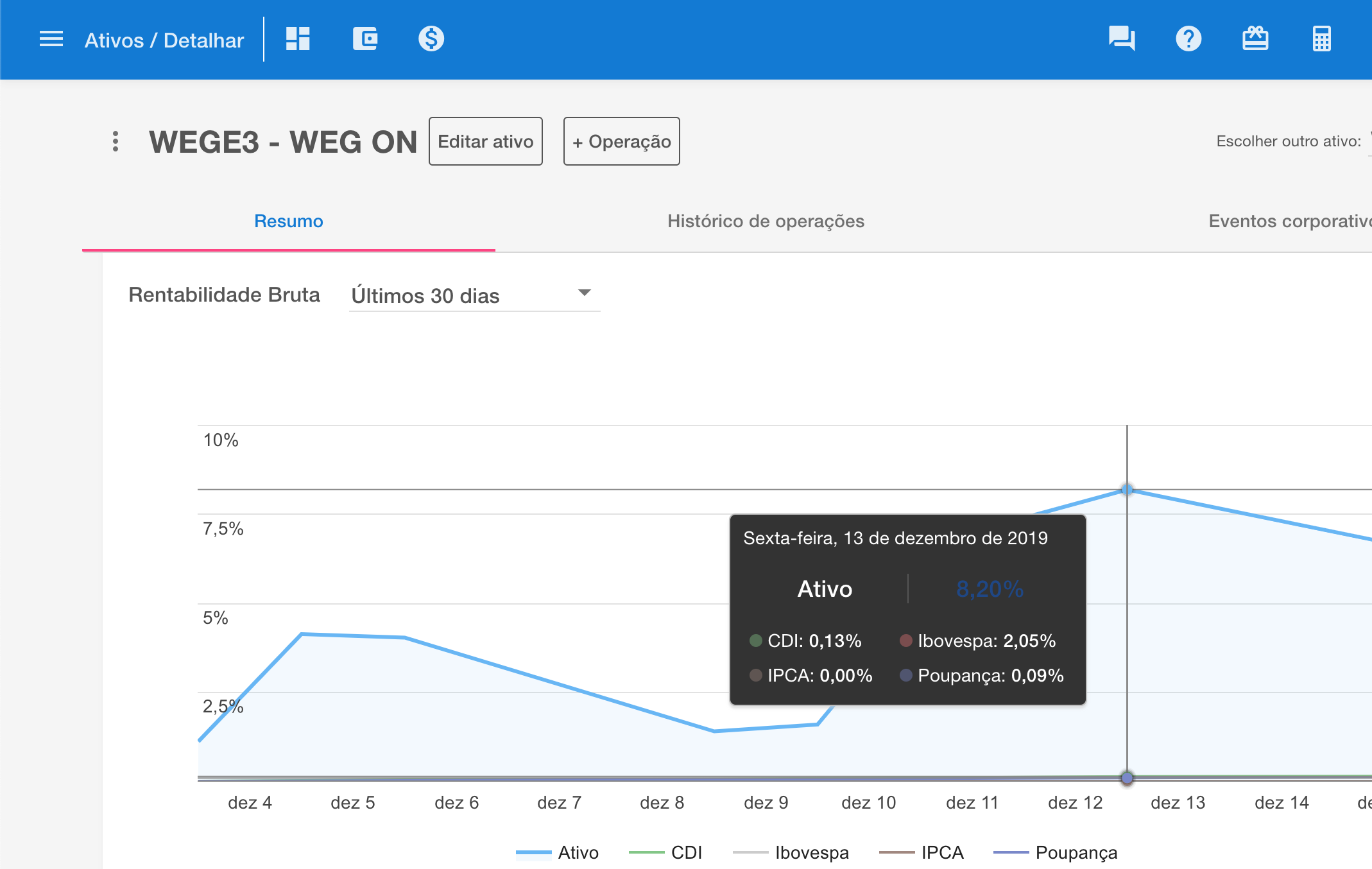 Isto pode ser feito no painel de rentabilidade bruta da carteira na visão geral ou na tela de detalhamento de um ativo.
