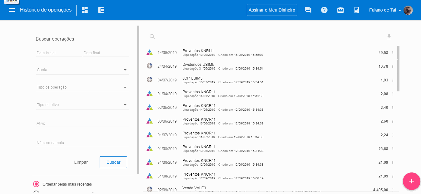 Entretanto, o Meu Dinheiro permite configurar a apuração para ser realizada pela data da operação (Pregão).